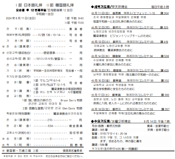 > 2024.8.11週報の礼拝順序