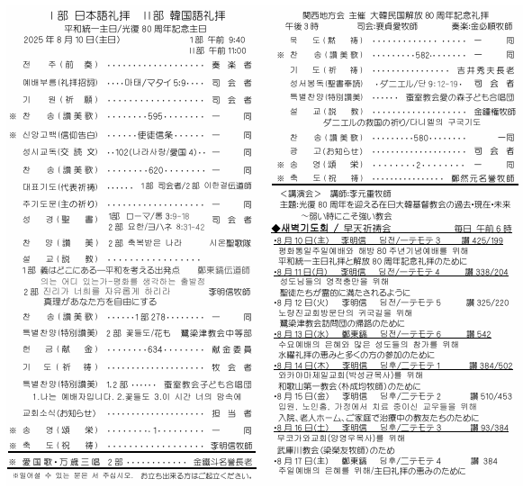 > 2025.8.10.週報の礼拝順序