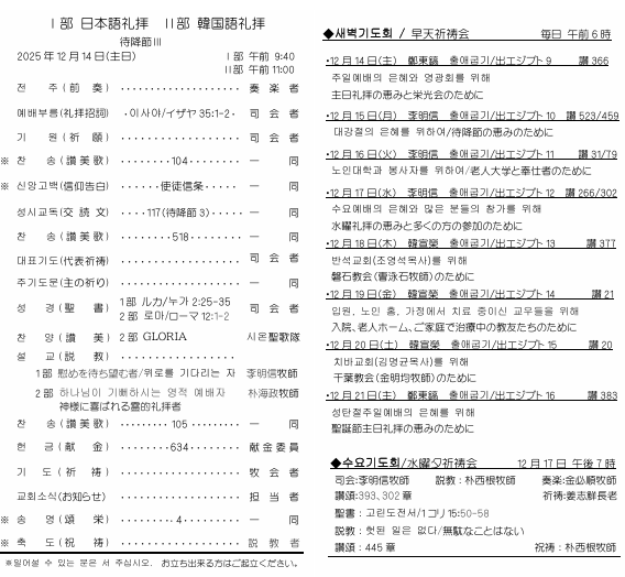 2025.12.14.週報の礼拝順序