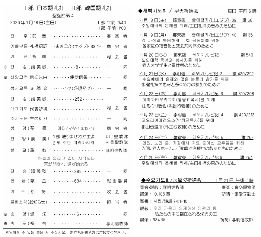 TOPページ > 週報 > 2026.1.18週報の礼拝順序