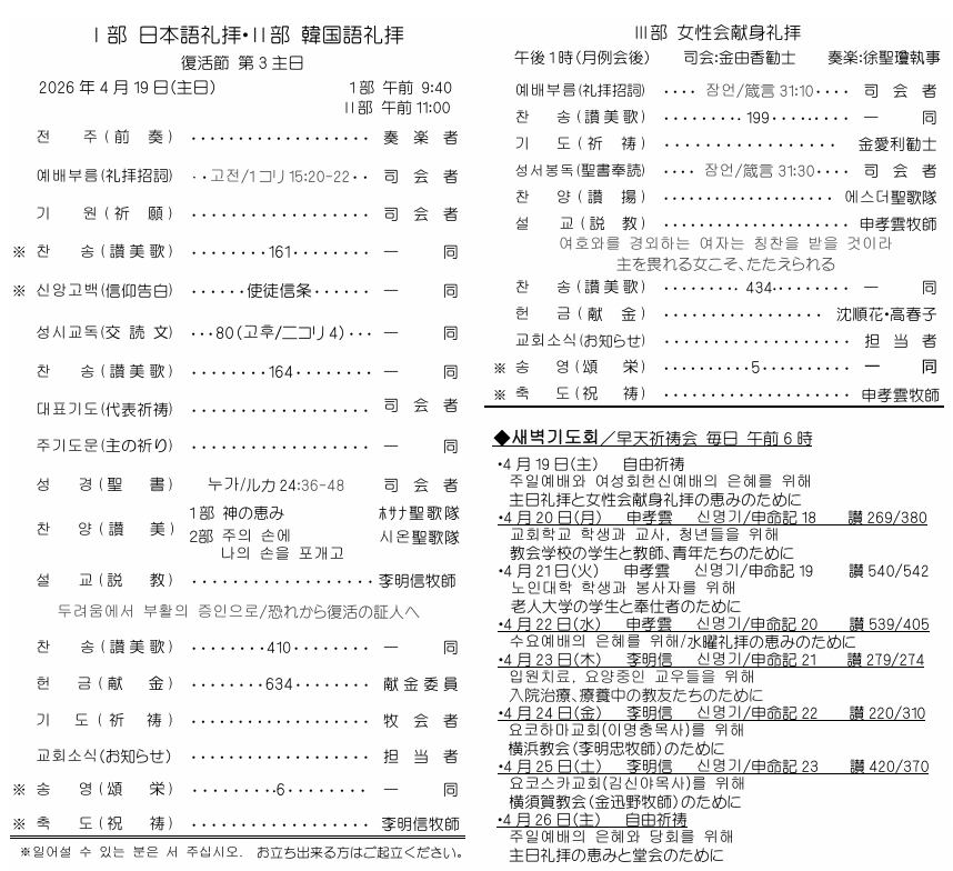 > 2026.4.19週報の礼拝順序